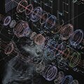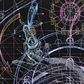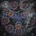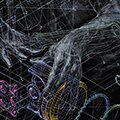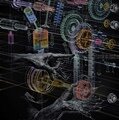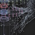 A machine – the simplest rotating devices of mechanical nature – come apart and expands on black background of Koyama’s canvases while parts of human body gently and with care hold, elevate or support the running parts. The Mechanism unfolds in human’s hands overcoming its utilitarian or even material nature and while generating aesthetical strength goes beyond the material. As a particular visualization of METAMACHINE Koyama’s devices transform and regenerate themselves into medium with access to supernatural dimension, as a mega-key to the parallel world where machine have same rights for beauty and sublime as human body in ours.