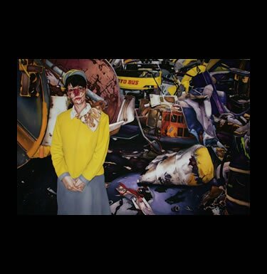 The author of "The Scene of the Accident," Naoki Sasayama directs his artistic attention to the inseparable topics of life and death. His first significant series of works was "Mountains", a set of oil paintings created between 2003 and 2004, that depict dramatic skies of dark green or grey and mountains with a corporeal softness. Appearing as if they were inner organs or stalagmites, the images of these mountains clearly manifest the artist's interest in the body-landscape; the physics and the morphology of death; and the visual effects of disfiguration.
